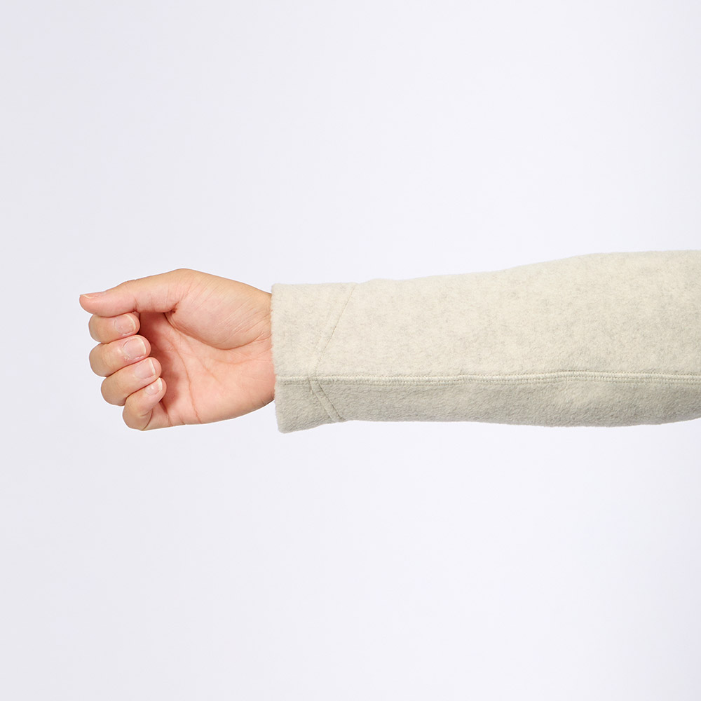 かさ高性に優れる編み糸を使用しているため空気を多く蓄え、薄手で軽量・コンパクトながら高い保温性を備えます。