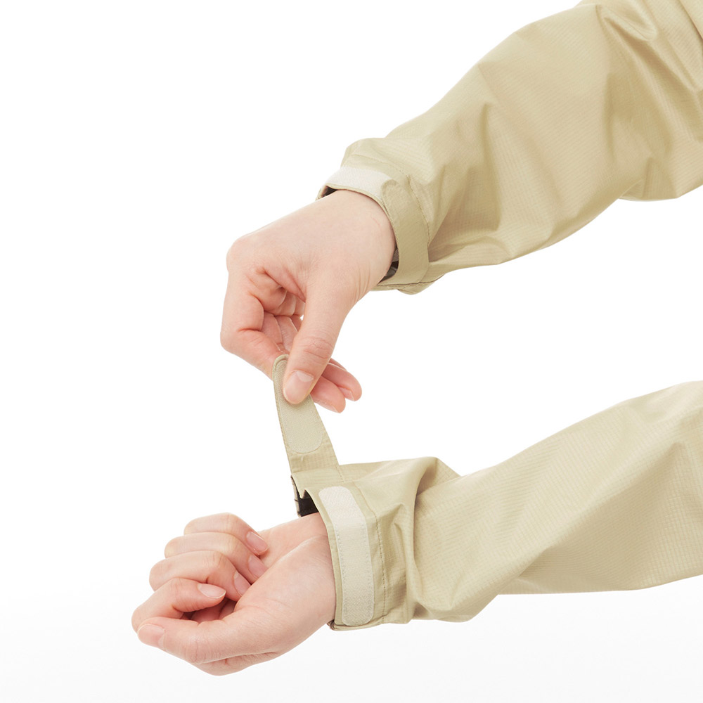 一般的なポリウレタン防水素材の特徴である、防水性を高めると透湿性が低下するという問題を非常に高いレベルで解決した、モンベル独自開発の防水透湿性素材です。雨を防ぎながら、汗の水蒸気をスムーズに外に逃がします。生地表面にははっ水加工を施しています。