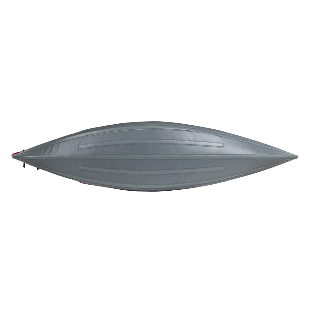 アルフェックシリーズ最大の特徴です。フレーム後端のテンションバーを使い、「てこの原理」によって少ない力で簡単に、艇全体にテンションをかけることができる理想の組み立てシステムです。艇の前後方向にかかる強いテンションにより、フレームパイプの肉厚を厚くすることなく、艇全体の剛性を上げることに成功。高い剛性を、より軽量なフレームで実現しました。(特許取得済み)