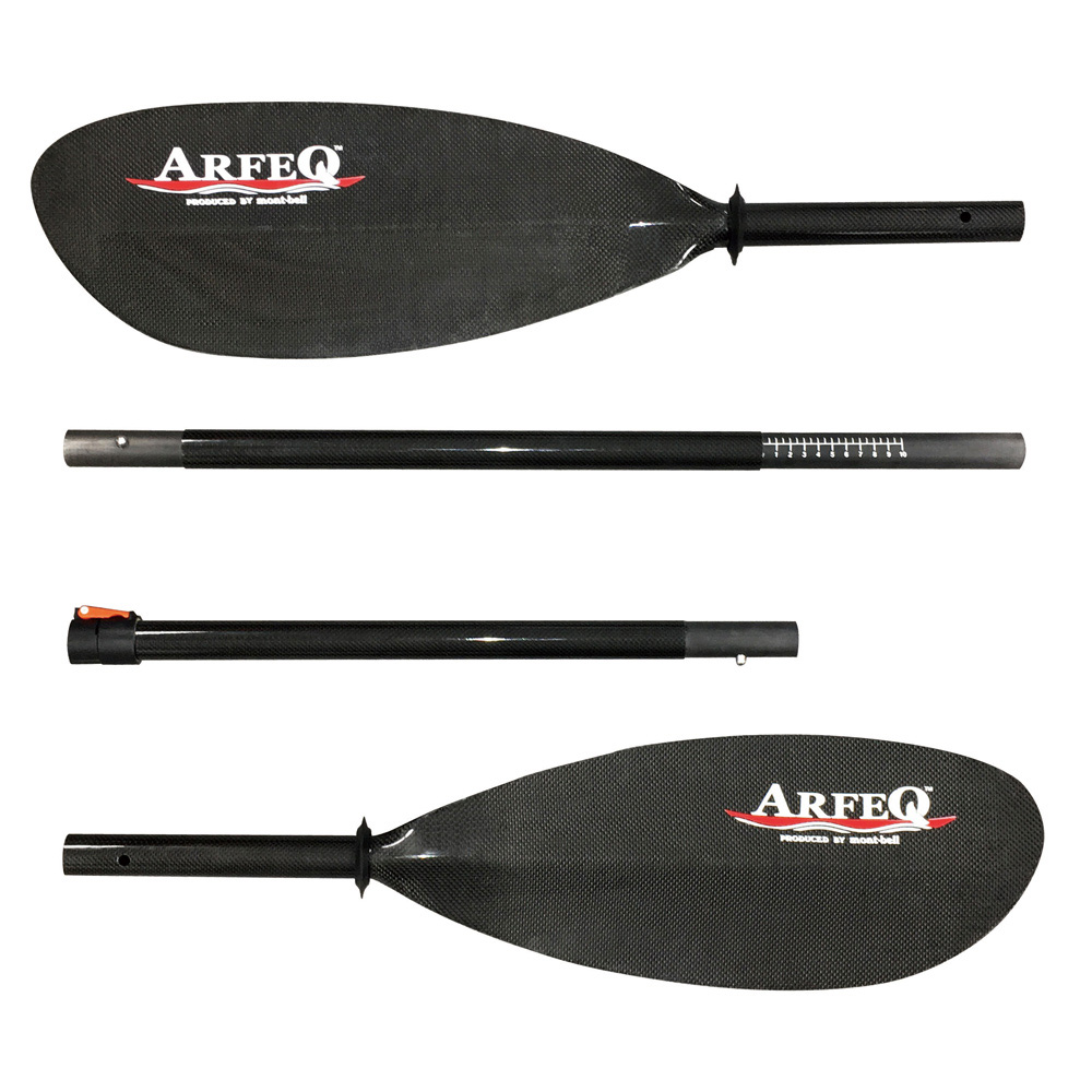 カーボン素材の軽量パドル。コンパクトに収納できるため、フォールディングカヤックでのツーリングに最適です。それぞれのサイズから、ジョイント部でさらに10cmまで延伸して使用することができます。4分割できるので、コンパクトに持ち運ぶことが可能です。