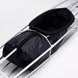 沈脱の際、艇内に入る水を最小限に抑える、シーカヤッキングの際には必須の装備です。また、乗り降りの際に艇内への砂や砂利の侵入も防ぎ、艇へのダメージとメンテナンスの手間を減らすことができます。別売りのラダーセットとの併用もできます。タンデム艇での使用には、コーミングカバーの装着が必要です。スモールの内側には小物を入れるのに便利なメッシュポケットがついています。