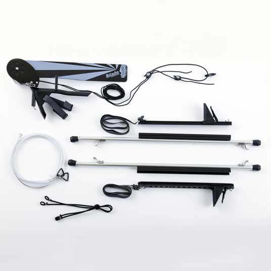 ボイジャーシリーズにセットできる機動力アップ用のラダーセットです。ラダー操作を兼ねる専用のフットブレイスとその取り付け用レール、ワイヤー、ラダー本体のセットです。