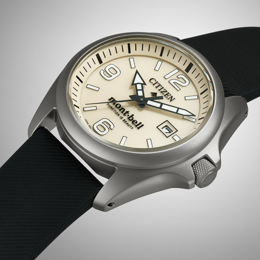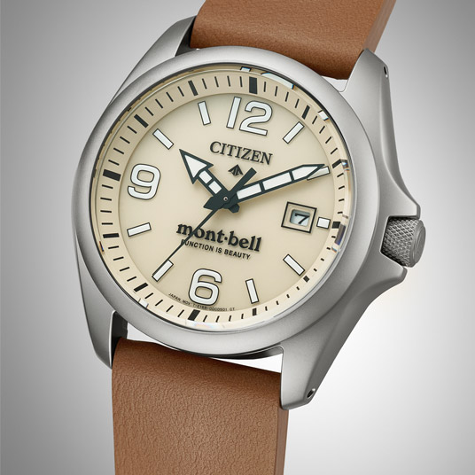 シチズン「PROMASTER」とのコラボレーションモデル第5弾! アウトドアのハードな環境を耐え抜くタフさ、昼夜を問わない高い視認性、簡単な操作性、シンプルながらも優れた実用性を備えています。背面からの浸水を防ぐ裏ぶたレスのモノコック構造ケースにより、タフさと同時になめらかな質感や時計美としての魅力を引き出しています。