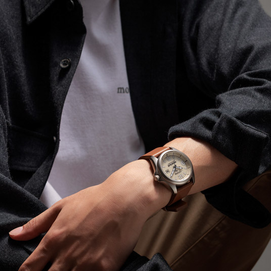 ケースとメタルバンドにはキズに強く、軽く、肌にやさしく、サビにくいスーパーチタニウム™1を採用。シチズン独自の表面硬化技術デュラテクトMRK2 を施し、すりキズのみだけではなく打ちキズから時計を守ります。バンドは、カーフバンドとシリコンラバーバンドに簡単に付け替えられ、日常使いとアウトドアアクティビティどちらにも対応できるモデルです。