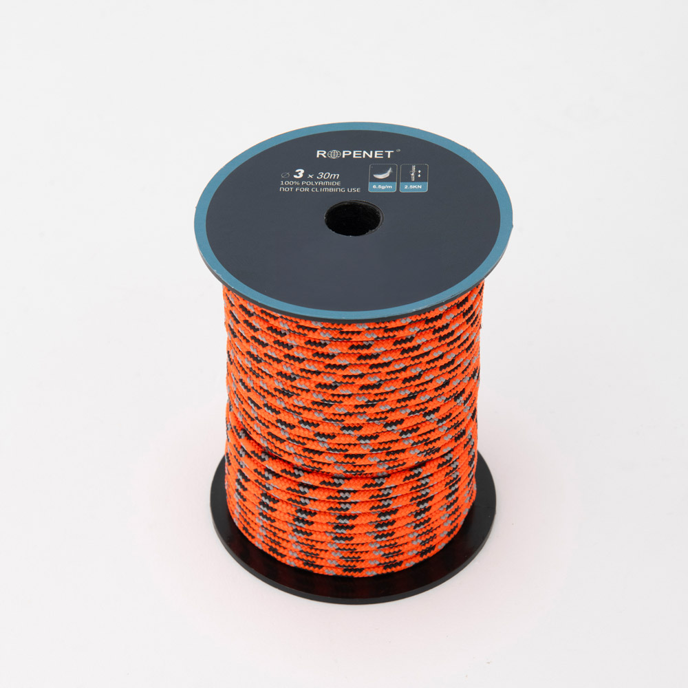 さまざまな用途に使えるナイロン製のアクセサリーコードです。30m巻きの大容量タイプ。巻き芯が付属し、収納と管理にも便利です。登山やキャンプなどアウトドアで広く使用できます。(クライミン用ではありません。破断強度を超えるような負荷がかかる物体の固定や人体の安全確保を目的とした使用はできません)