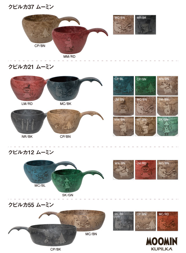 【カラー】リトルミィ/レッド(LM/RD)、ムーミンコーヒーブルー(MC/BL)、ムーミンコーヒー/ブラウン(MC/BN)、ムーミン/ブラウン(MN/BN)、スナフキン/グリーン(SK/GN)