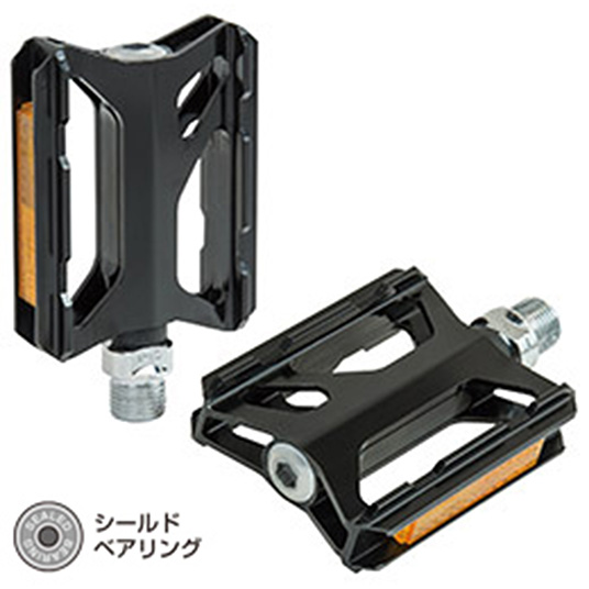 コンパクトな街乗り向けアルミ合金ペダル。シールドベアリング採用。
