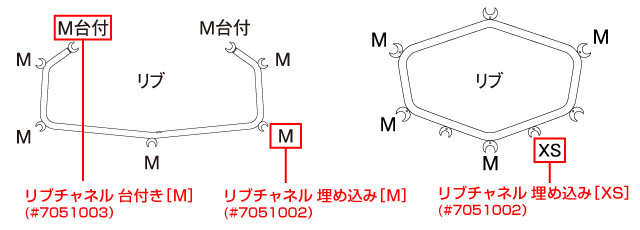 ※リブチャネルはリブやシートと他のフレームパイプを接合するためのパーツです。