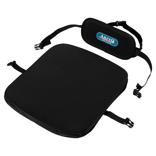 座面はキールパイプにワンタッチで直付けでき、シンプルなサイドベルトで補助します。別パーツの背もたれ付き。