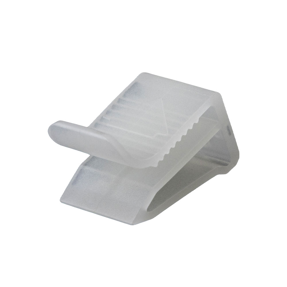 使用直前:エンド部分に親指を引っ掛け、まっすぐ後ろに引いてセーフティクリップを取り外します。