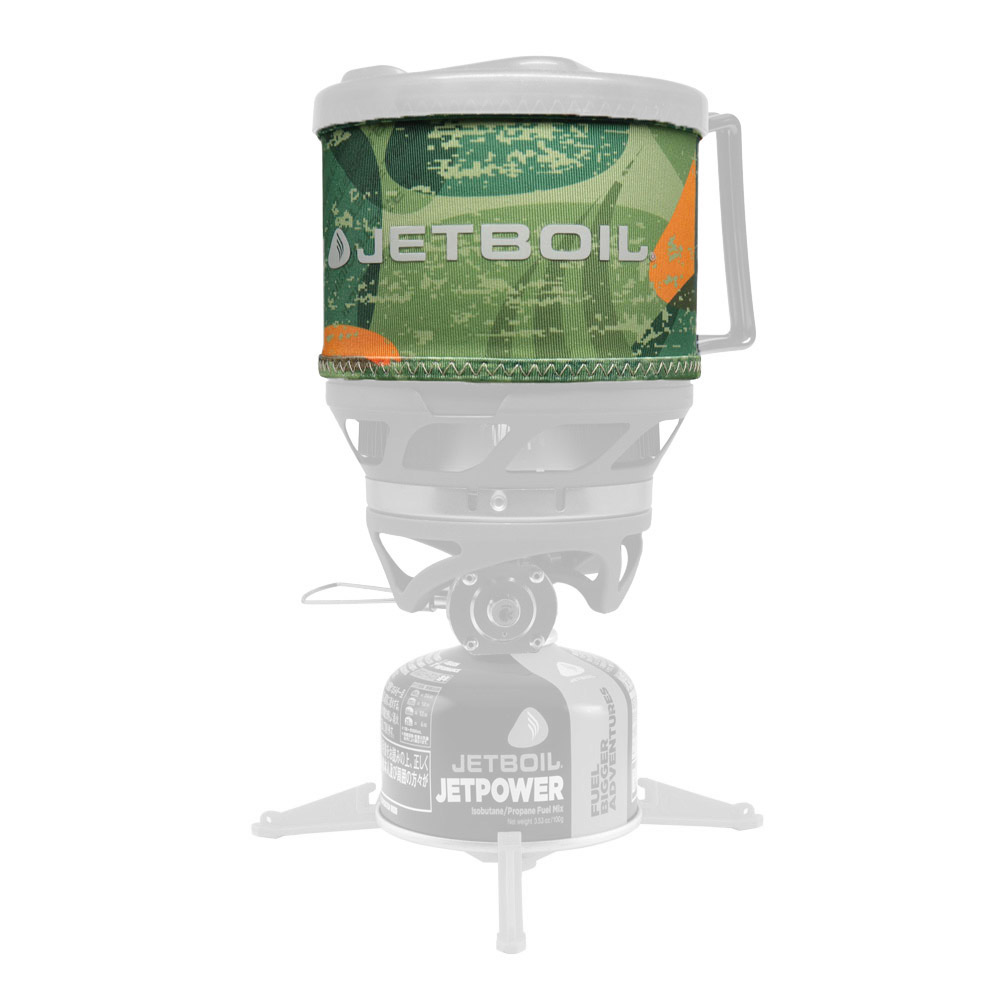 JETBOIL®ミニモの着せ替え用クロロプレンゴム製カバーです。デザインだけでなく、クッキングポットを保温する機能もあります。
