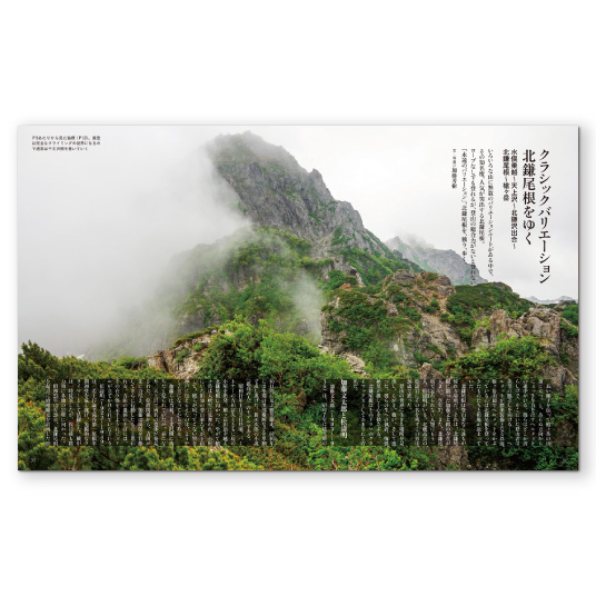 時代を超えて伝えたい山の魅力―。ひとたびページをめくると、先鋭的な現役クライマーにとっても、散策を楽しむハイカーや登山愛好者、さらに一線を退いた往年の登山家まで、想像力と冒険心をかきたてる、そんな存在でありたい。