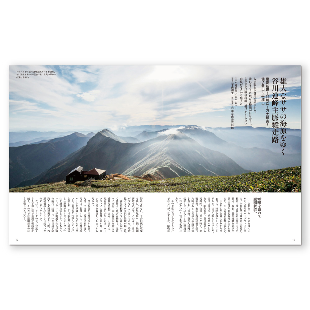 時代を超えて伝えたい山の魅力―。ひとたびページをめくると、先鋭的な現役クライマーにとっても、散策を楽しむハイカーや登山愛好者、さらに一線を退いた往年の登山家まで、想像力と冒険心をかきたてる、そんな存在でありたい。