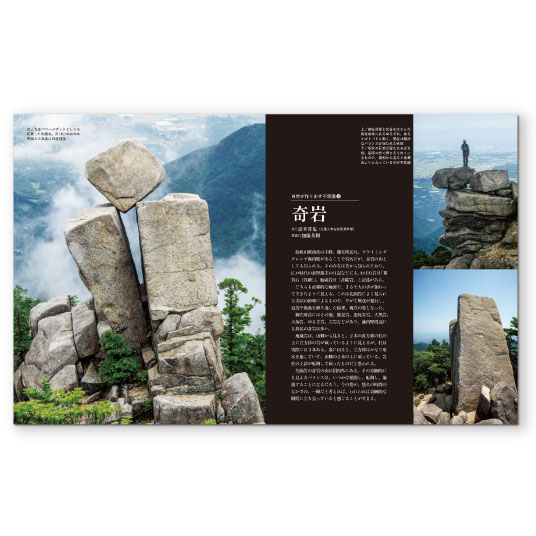 自然が作り出す不思議 ①太陽柱、②雪まくり、③奇岩、④笠雲