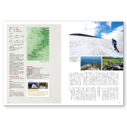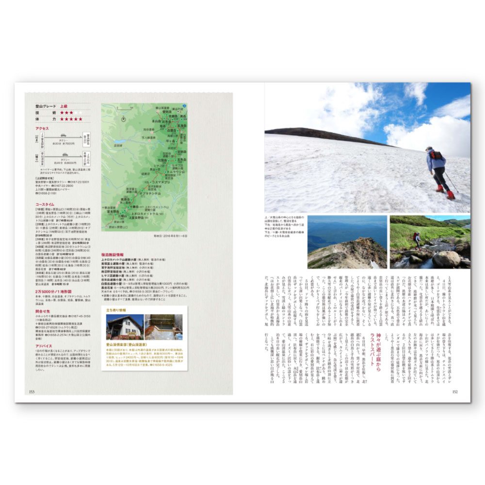 北海道 石狩山地 十勝・大雪完全縦走/東北 朝日連峰 大鳥池から大朝日岳へ/上越 谷川連峰 平標山から谷川岳へ/信州 八ヶ岳 南八ヶ岳縦走/四国 剣山地 剣山から三嶺へ