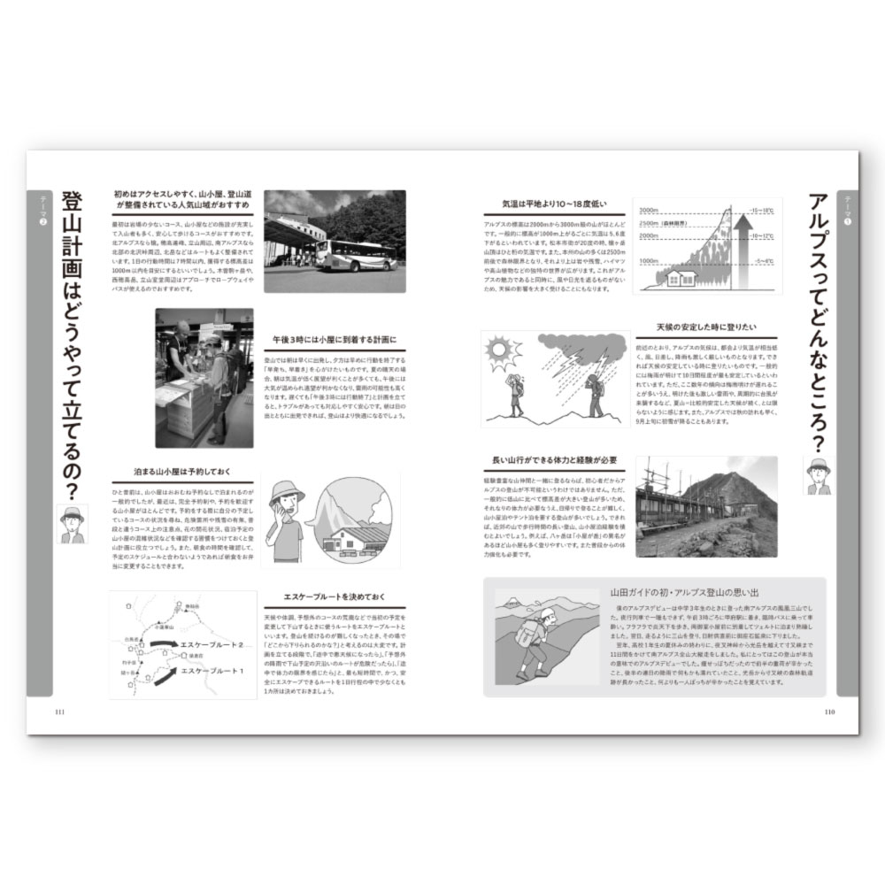 ①アルプスってどんなところ? ②登山計画はどうやって立てる? ③装備は何を準備すればいい? ④アルプスを登るときに気をつけることは? ⑤アルプスで起こりやすいアクシデントは? ⑥山小屋に泊まるときに注意することは? ⑦快適なテント泊をするには?