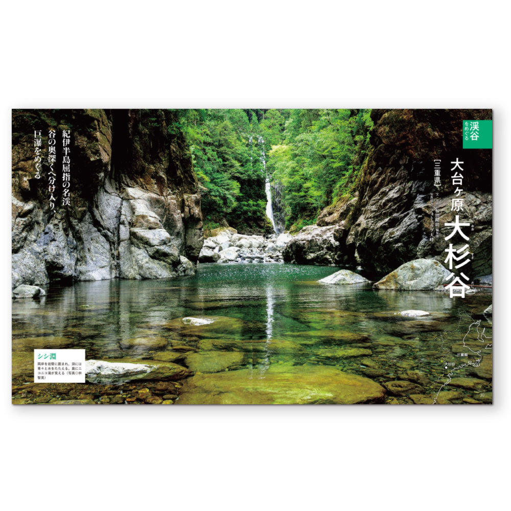 岩木川源流暗門の滝(青森県)、斜里岳旧道(北海道)、鳥海山二ノ滝コース(山形県)、畦ヶ丸・大滝沢と西沢(神奈川県)、棒ノ嶺・白谷沢(埼玉県)、大岳山・海沢探勝路(東京都)、両神山・表参道から七滝沢道(埼玉県)、河津七滝(静岡県)、八経ヶ岳・弥山川(奈良県)、裏六甲地獄谷(兵庫県)、帝釈峡(広島県)、面河渓(愛媛県)、祖母山・神原コース(大分県)