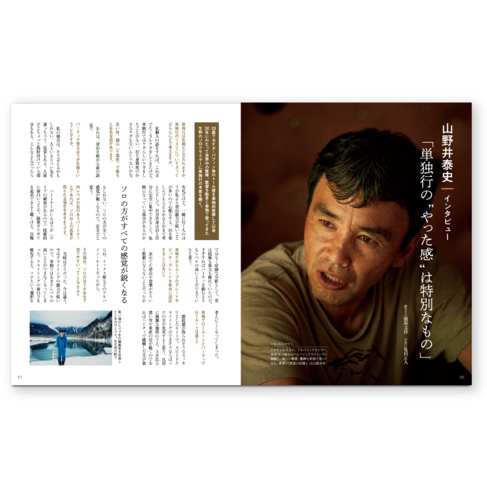 時代を超えて伝えたい山の魅力―。ひとたびページをめくると、先鋭的な現役クライマーにとっても、散策を楽しむハイカーや登山愛好者、さらに一線を退いた往年の登山家まで、想像力と冒険心をかきたてる、そんな存在でありたい。