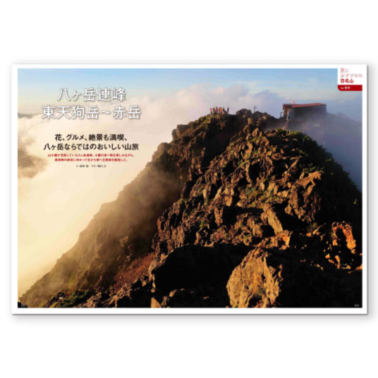 日本アルプスを中心に夏に登りたいおすすめの山とルートを紹介。初心者向けのハウツーや登山に活用できる山小屋、アクセス情報のほか、北海道から九州まで全国の名山ガイドも掲載しています。2019年6月6日発売。