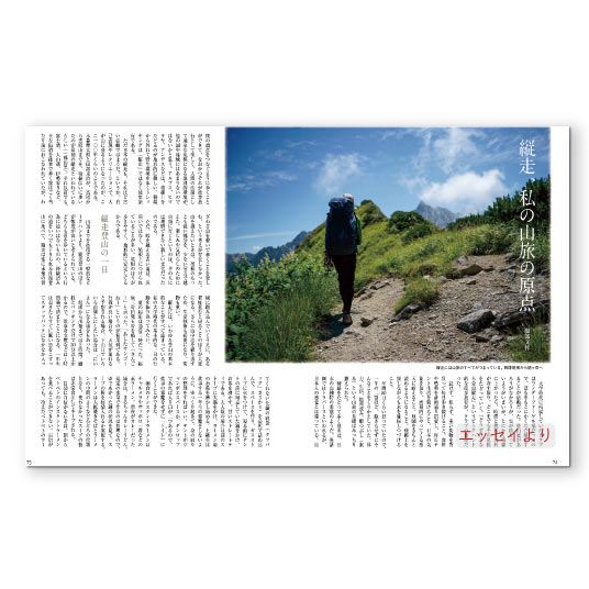 時代を超えて伝えたい山の魅力―。ひとたびページをめくると、先鋭的な現役クライマーにとっても、散策を楽しむハイカーや登山愛好者、さらに一線を退いた往年の登山家まで、想像力と冒険心をかきたてる、そんな存在でありたい。
