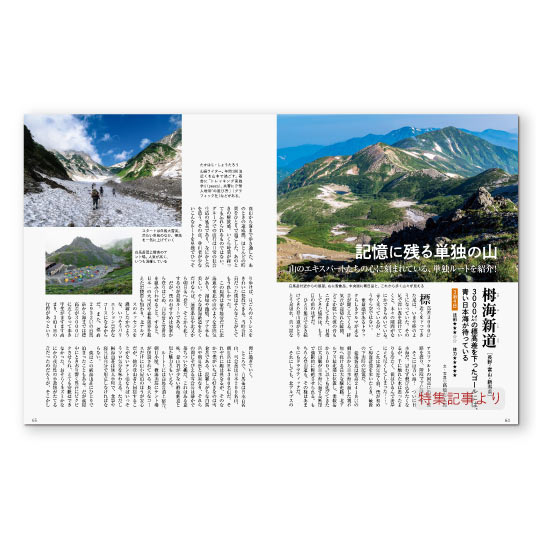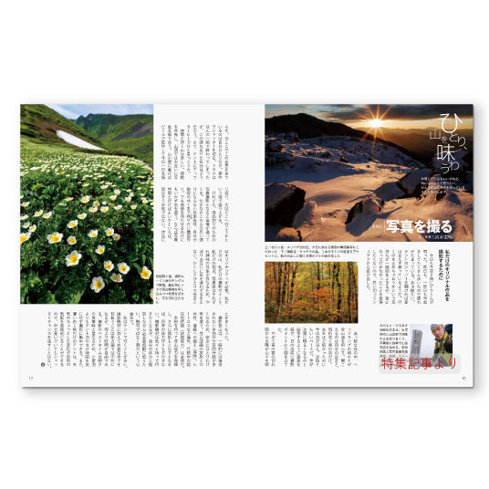 時代を超えて伝えたい山の魅力―。ひとたびページをめくると、先鋭的な現役クライマーにとっても、散策を楽しむハイカーや登山愛好者、さらに一線を退いた往年の登山家まで、想像力と冒険心をかきたてる、そんな存在でありたい。