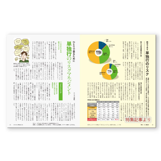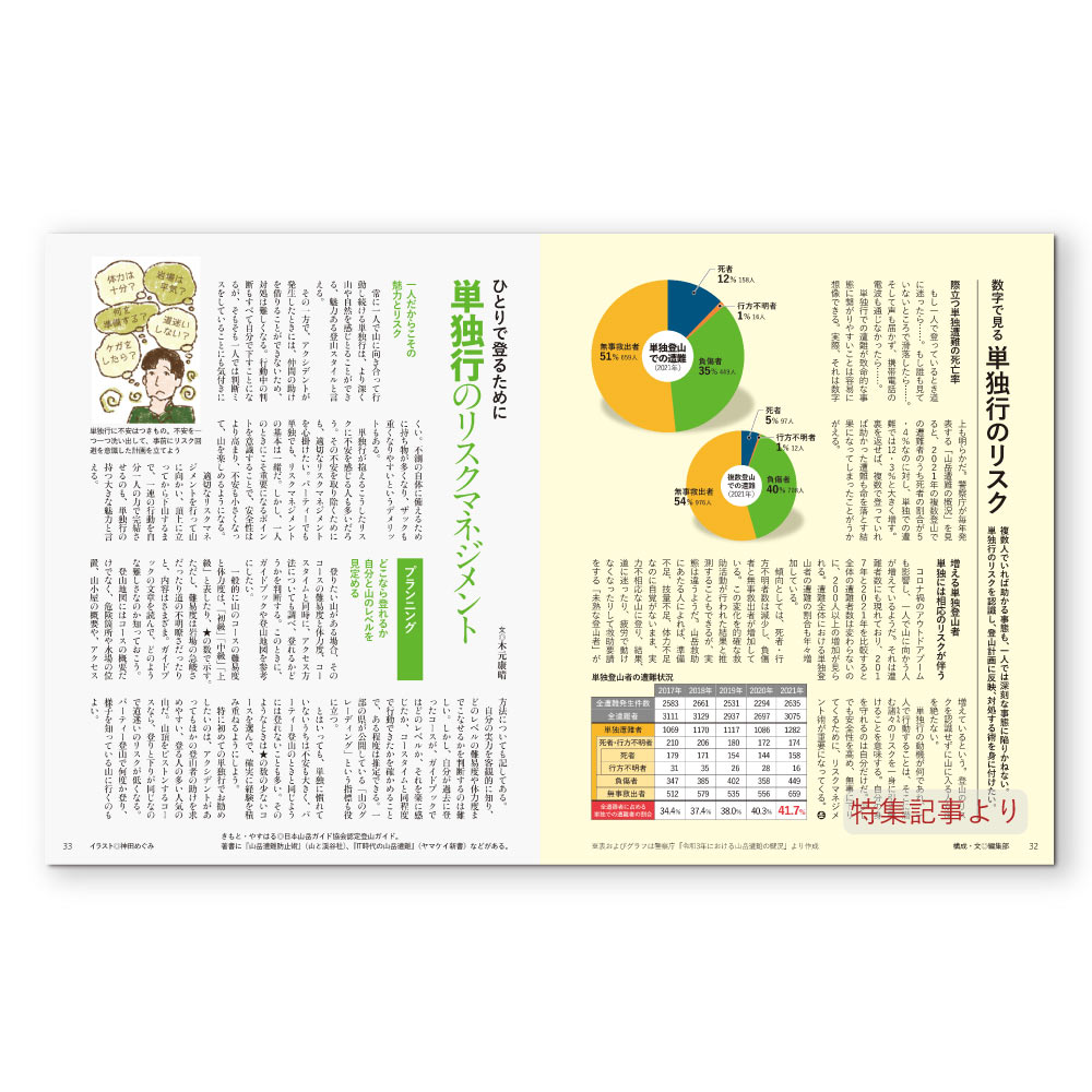 山の魅力や楽しさ、そこで生まれた文化を伝え、安全面や環境問題を含めて山と人との関係をより良いものにしたい、そんな思いを込め、みなさまにお届けいたします。