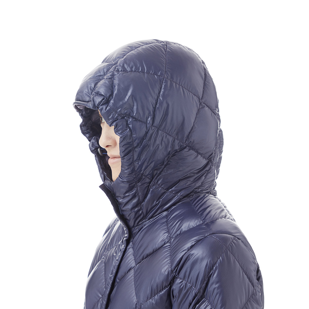 大変軽量でコンパクトに収納できる膝丈の女性用ダウンコートです。超高品質800フィルパワー・EXダウンを、しなやかな軽量シェル素材で包み込み、軽やかな暖かさを実現しました。ウエストを程よくシェイプさせた女性らしいデザインを採用。普段使いやトラベルでの携行に最適です。
