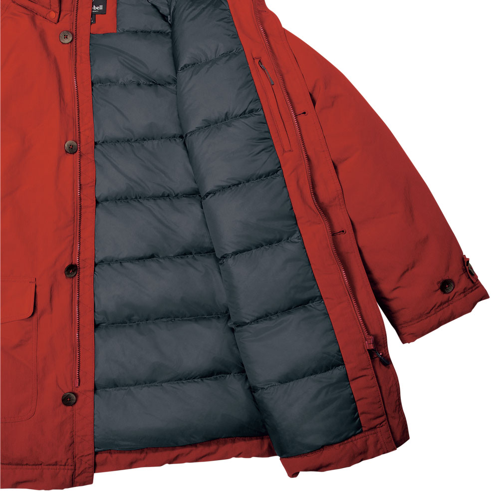 旅行やキャンプ、タウンユースまで幅広く活躍する暖かなコートです。軽量性と保温性に優れたダウンを、三枚差し構造でたっぷりと封入。表地にはっ水加工を施すことで、小雨程度の雨なら難なくはじき、汚れも付着しにくくなっています。また、裏地には帯電防止加工を施し、不快な静電気を軽減します。襟の裏地には、暖かく肌触りが良い起毛地を使用しています。フードは取り外しが可能です。