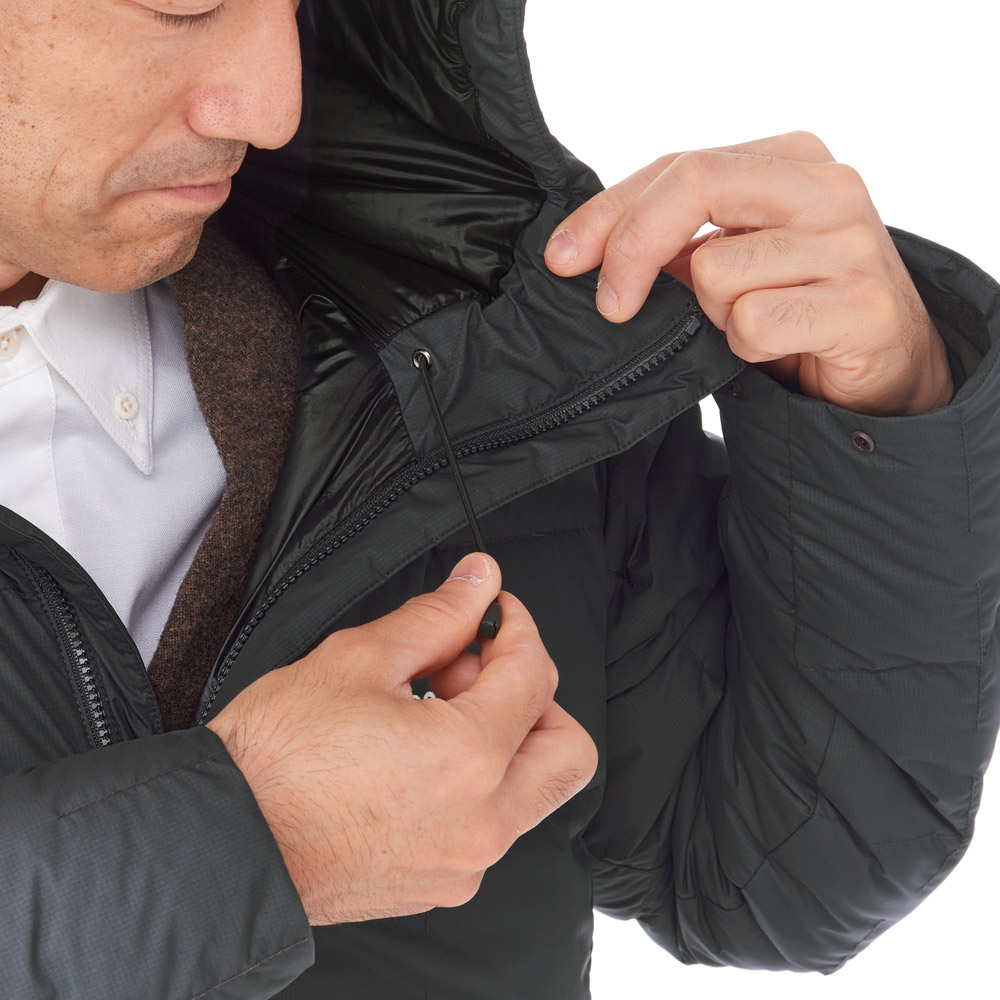 高い防風性と優れた防水透湿性を持つ素材「ウィンドストッパー®ファブリクス」で、高品質ダウンを包み込んだ軽量な膝丈のコートです。コンパクトに収納できるため、寒冷地へ旅行する際などの持ち運びに便利です。