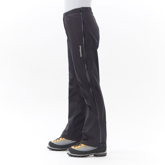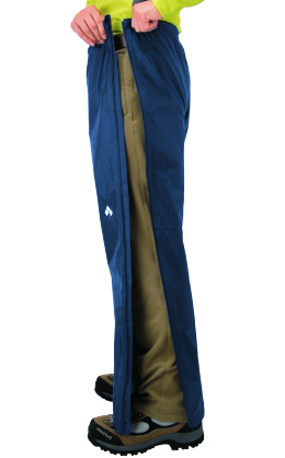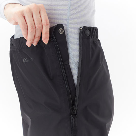 サイドを全開にすることができ、登山靴を履いたままでも容易にパンツの着脱が行えます。