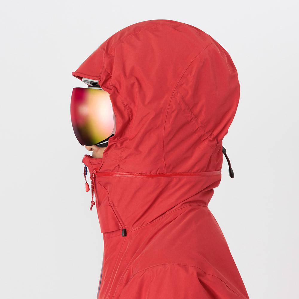 【特長】トライアクスルフード / フィット感を高める独自の立体パターン / 収納式フード / 高めの襟元 / ジッパーが顔に当たらない仕様 / エアレーションシステム / 立体裁断(肘) / アルパインカフ / スムースピットジップ / アクアテクト®ジッパー / ダブルスライダージッパー / 滑り止め付きウインドスカート / リードインコード・システム(裾) / スタッフバッグ付き