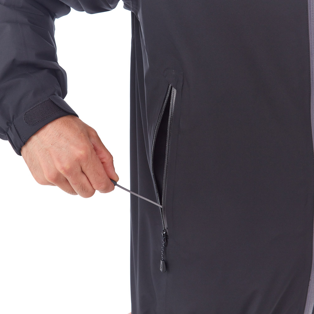 本製品は全ての縫い目を目止め(シームテープ)処理することで身体側に水が浸入しないように設計されていますが、構造上ポケットは目止め出来ません。そのため、本製品のポケットは完全防水ではありません。貴重品等は防水ケースに入れるなどして、防水対策をしてください。