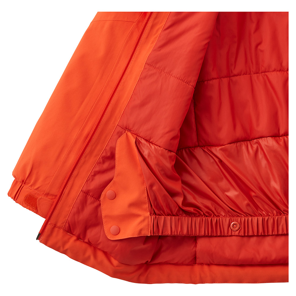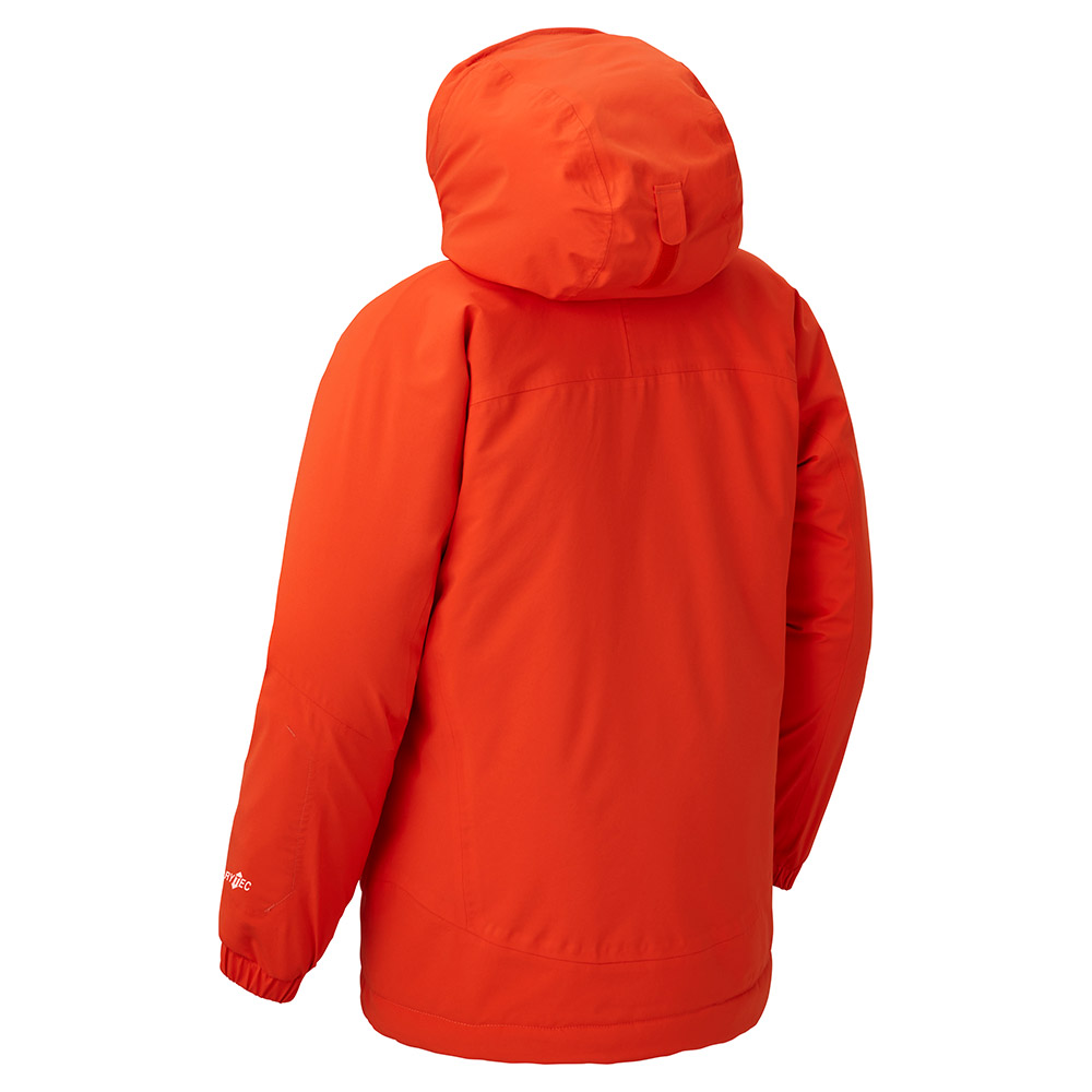 防水透湿性に優れ、冬のトレッキングやスキーに適した化繊中綿入りの防水ジャケットです。高い機能性を持ち、安全面と使いやすさに配慮しています。フードは、スキー用のヘルメットの上からでも着用できます。左袖にはリフト券やICカードを収納できるアクアテクト®ジッパー付きポケットを設けています。約20cmの身長差に対応するグローフィットシステムにより、長く着用できます。袖口はグローブの上から被せられるように広めにしています。キッズのスノースポーツ用パンツやビブと上下つなげられるシステムを備え、雪の侵入を防ぎます。