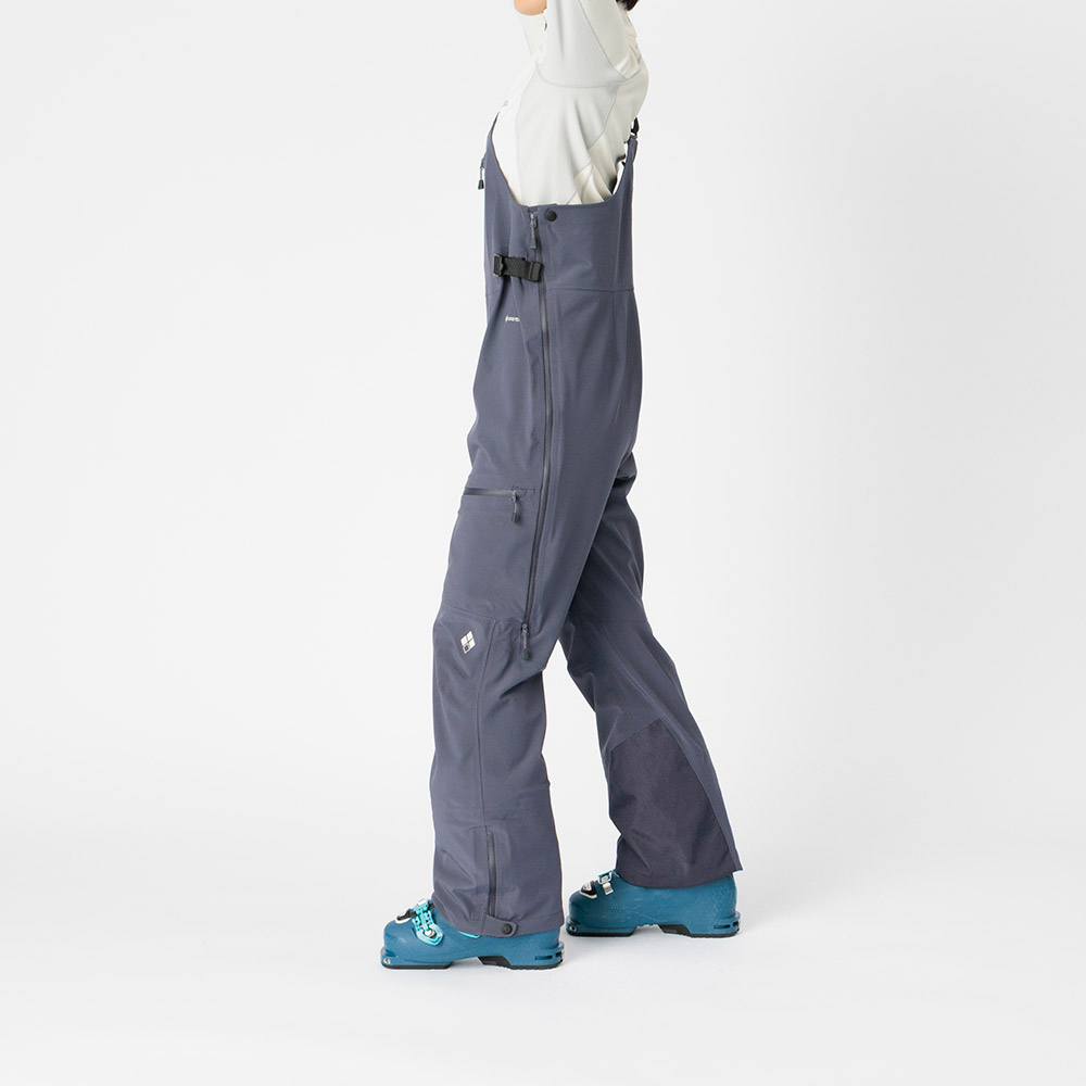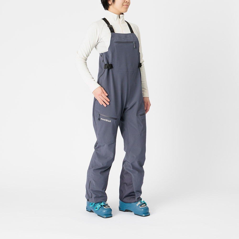 スキーやスノーボードなどのスノースポーツに適した透湿性とストレッチ性に優れた素材を使用した、胸の高さまで覆うデザインのビブです。スキーブーツなどの大型ブーツに対応した裾幅です。一カ所のバックルでサスペンダーの長さを容易に調節可能。