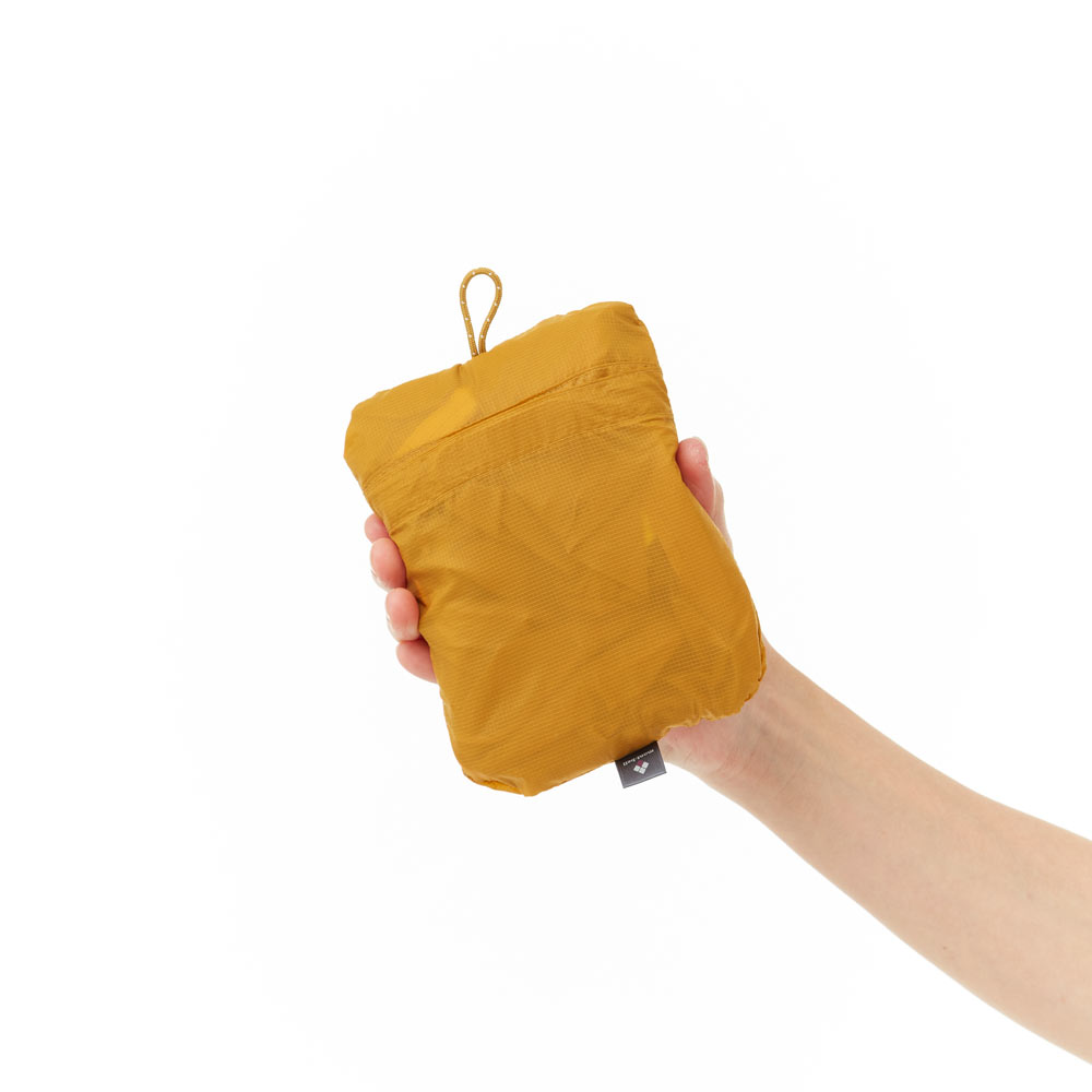 内側に設けた収納用ポケットにコンパクトに収まるポケッタブル仕様です。