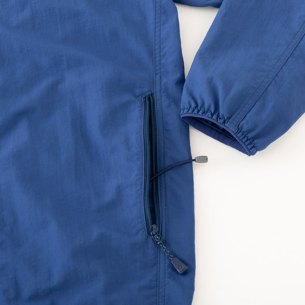 【特長】反射ロゴ(胸・背面首元) / 袖口はゴムでフィット / ジッパーがあごに当たらない仕様 / リードインコード・システム / フードの顔の周囲は縫い込みゴムでフィット / 後頭部のベルクロでフィット感を調整可能 / ネームタグ付き