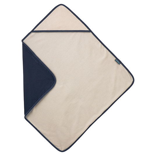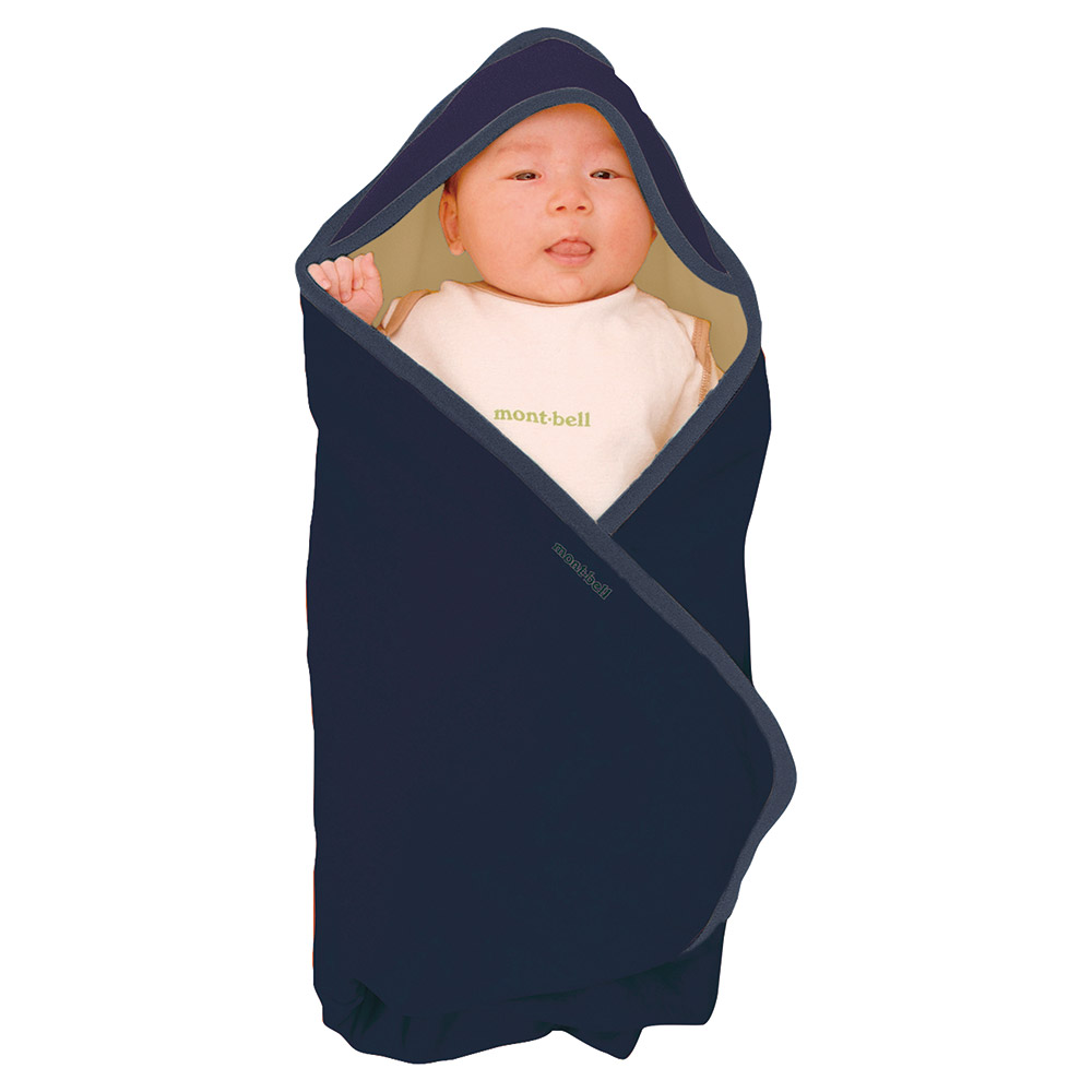 おくるみやブランケットとして使用できる便利なアイテムです。表地にははっ水加工を施しているので、小雨程度なら難なくはじき、汚れも付着しにくくなっています。裏地は薄手でたいへん肌触りが優しいシャミース™を使用し、優しくお子さまを包み込みます。