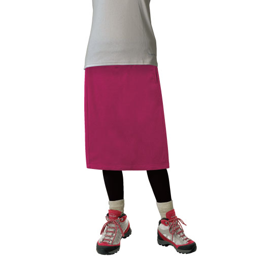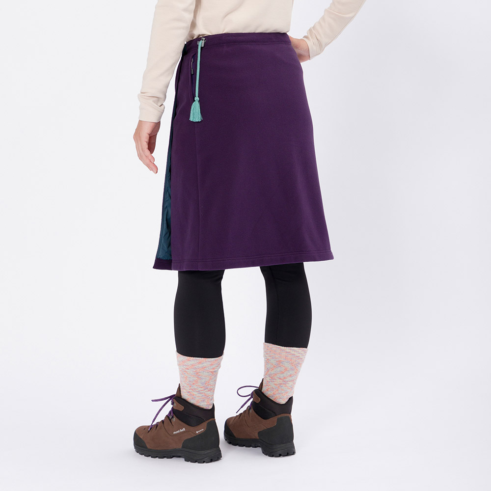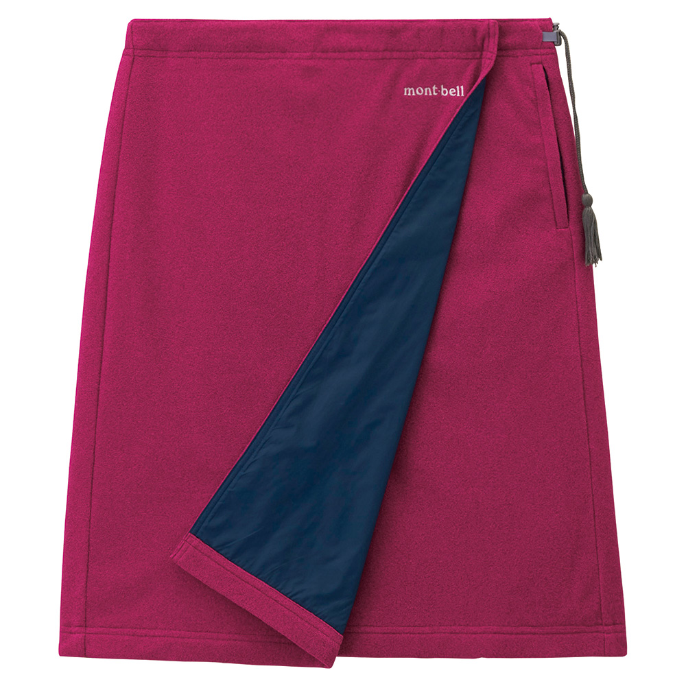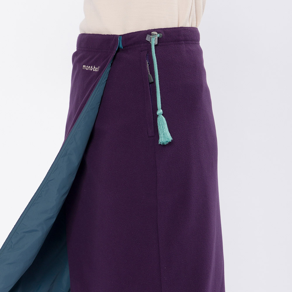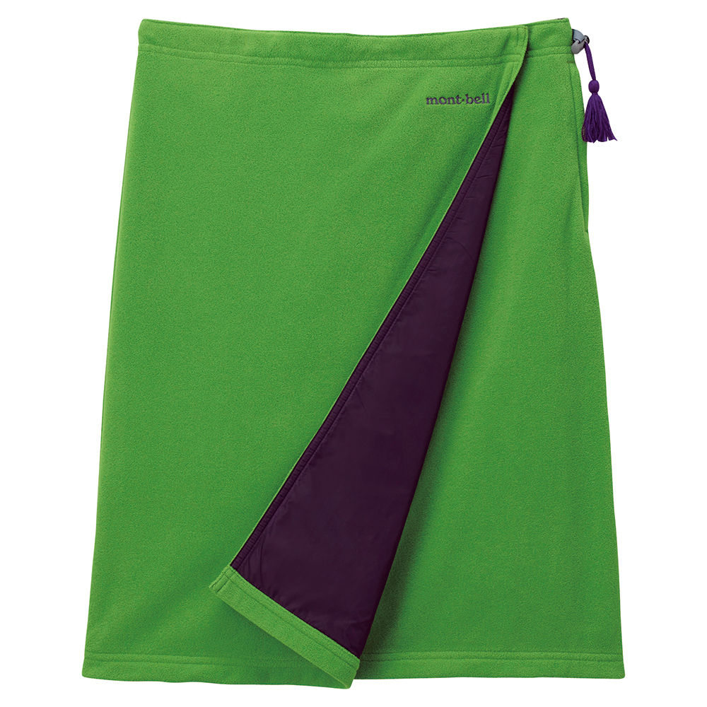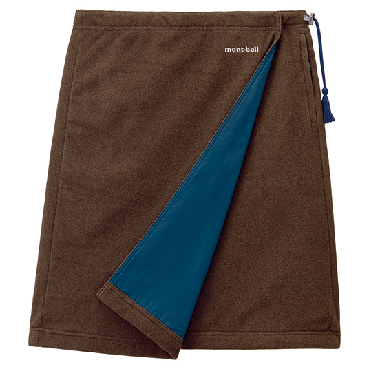 暖かなシャミース™地の巻きスカートです。表面には暖かなフリース地、裏面には足さばきのよいナイロン地を使用。ナイロン地には高いはっ水性を持ち、汚れが付着しにくいはっ水加工を施しているため、食事などの際には裏返してひざ掛けとしても利用できます。