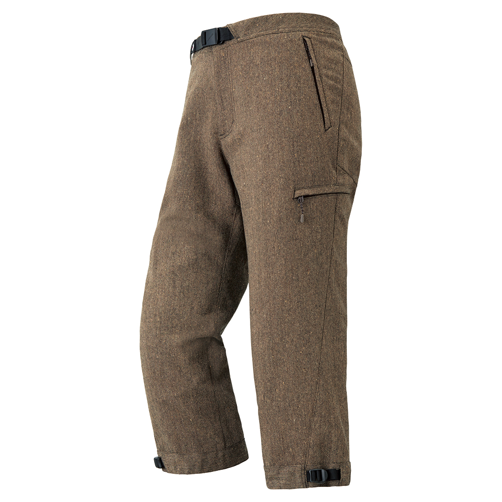 保温性に優れたウールを使用した、クラシックなデザインのニッカです。裾は絞ることができ、足上げしやすくなっています。また、傷みやすい尻部は生地を二重にして補強を施しています。