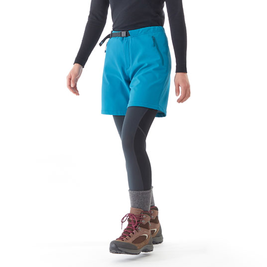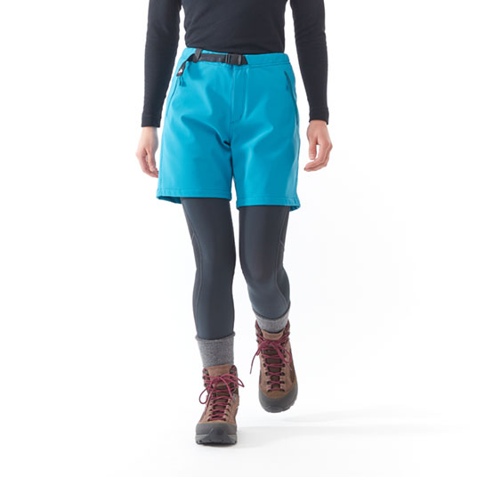 抜群のストレッチ性と防風性・保温性を備えた素材を使用した、ひざ上丈のショーツです。タイツとの組み合わせで幅広い用途・季節に対応。行動時の冷えを防ぐため、股上はやや深めに設定しています。