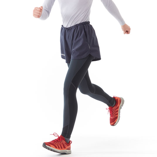 足上げしやすい長さで、ランニングに便利なコインポケットや反射テープを備えています。吸水拡散性に優れ、蒸れにくい素材を使用しているので汗をかいても快適な着心地です。
