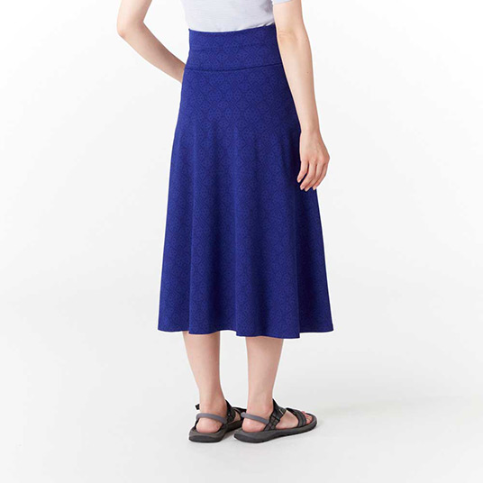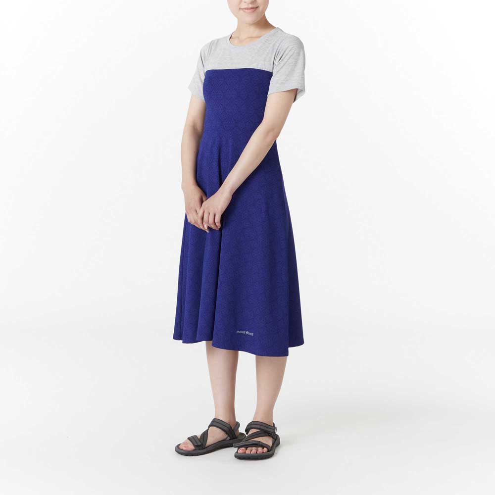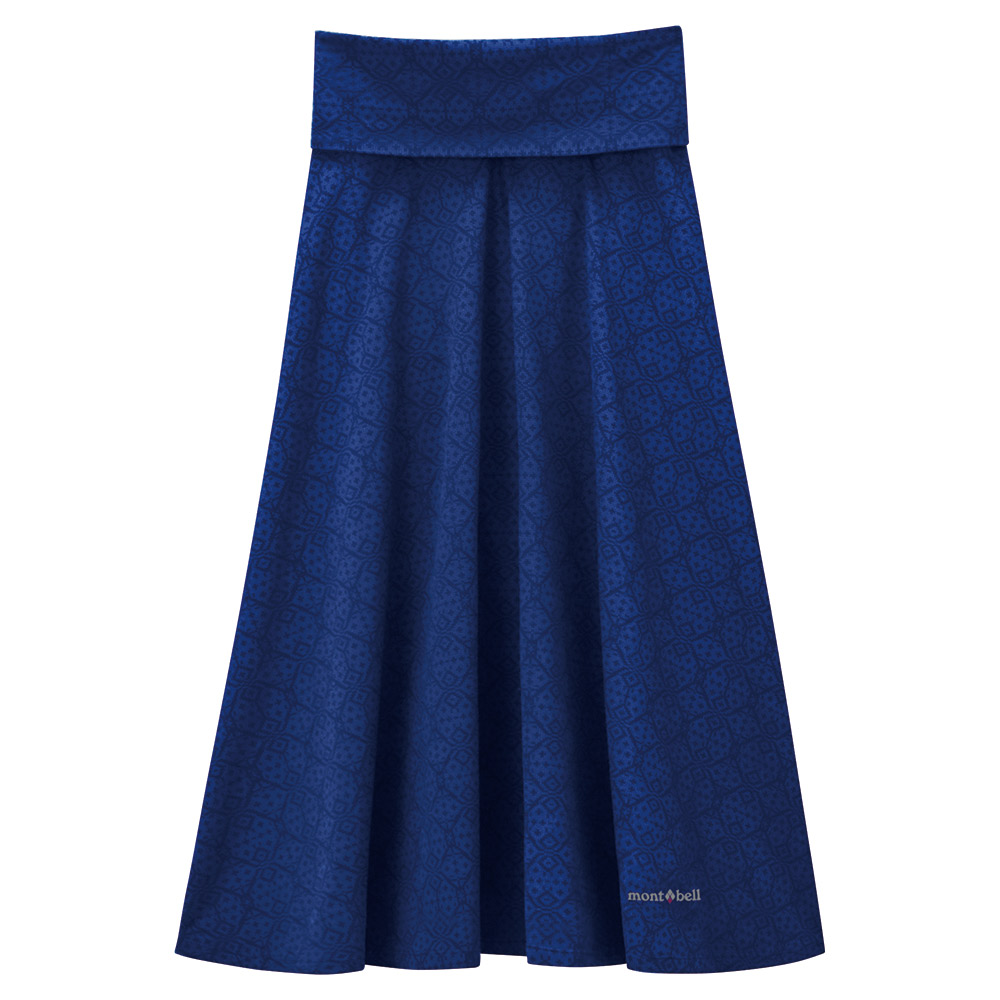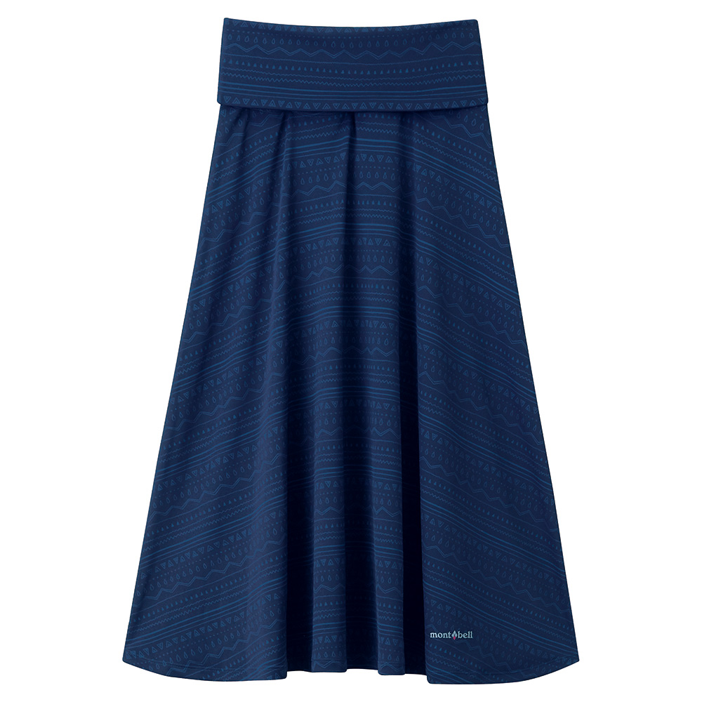 ロングスカートとワンピースの2通りの使い方が楽しめる、薄手のスカートです。ウエスト部分の長さを変えることで、丈の長さを自由に調節できます。吸水拡散性・制菌防臭効果に優れ、ストレッチ性を備えた生地を使用し、トレッキングやキャンプ、リラックスタイムなどさまざまな場面で活躍します。プリント柄(MIBL)と無地(GY)の2色を展開しています。