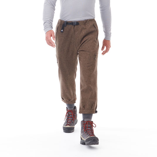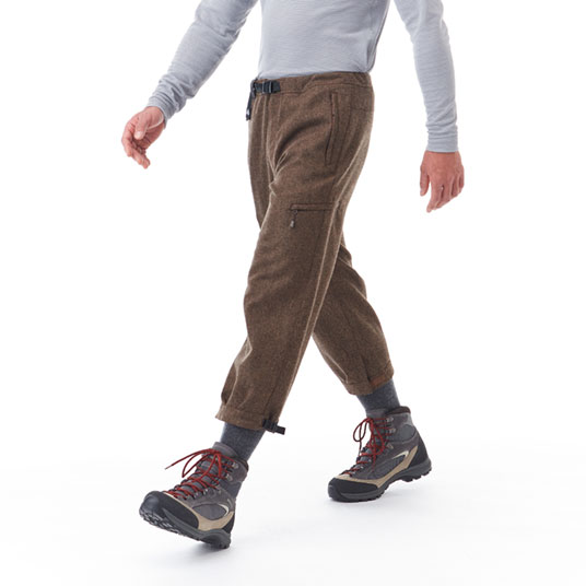 保温性に優れたウールを使用し、秋のトレッキングに最適なニッカです。足上げがしやすく、裾はホックとテープで絞ることができます。