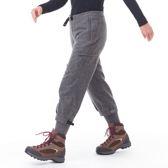 肌触りがよく、保温性に優れた中厚手のウール素材を使用したニッカです。足上げがしやすくし裾はホックとテープで絞ることができます。