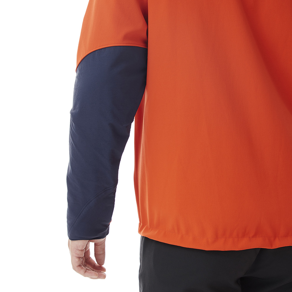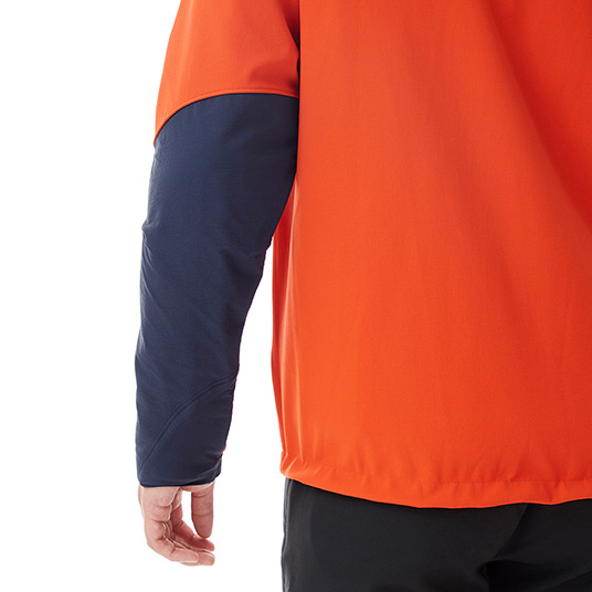 アウターに必要な防風性・はっ水性に加え、抜群のストレッチ性を備えたジャケットです。裏面には速乾性に優れた素材を使用し、起毛加工を施すことで優れた保温性を実現。擦れやすい肩と腕には、耐久性に優れた生地で補強を施し、冬季のアルパインクライミングなどでも高いパフォーマンスを発揮します。