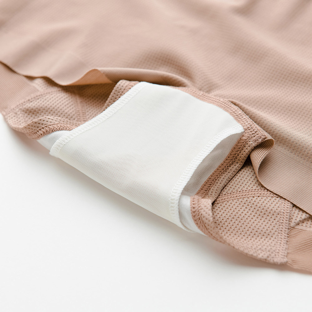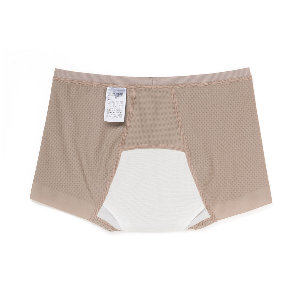 クロッチ部分はジオライン®メッシュに防水生地を合わせた二重構造。ナプキンを外す時の音がしにくい生地を使用しています。