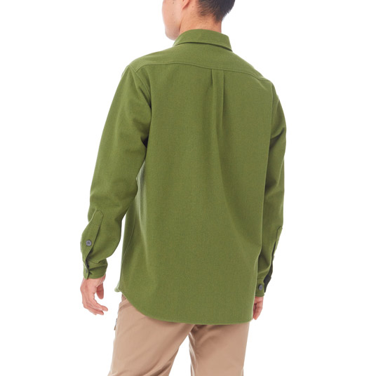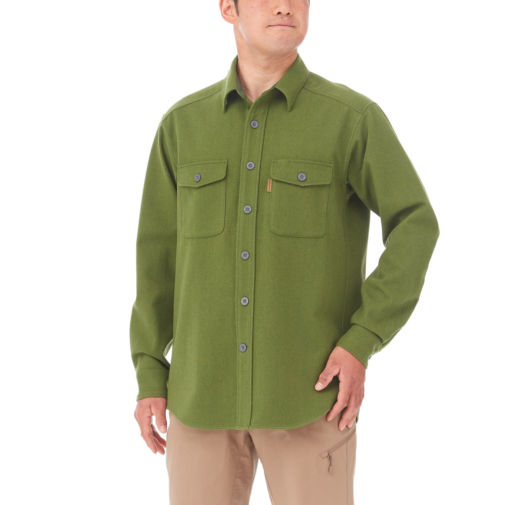 卓越した保温性を持つウールを高密度で織り込んだ厚手のシャツです。防風性と吸湿性を兼ね備え、トレッキングに最適です。