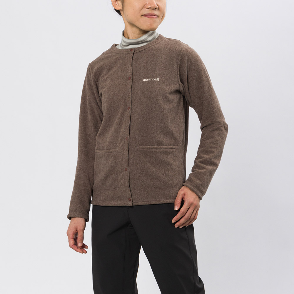 肌寒い時期の温度調節などに大変便利なアイテムです。フロントにはスナップボタンを使い、中間着として着用した際にも、ごわつきにくくなっています。