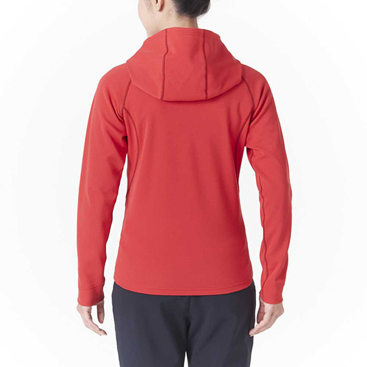 表面と裏面で最良の断熱材となる空気を挟み込む、三次元構造を形成した高機能素材。暖かさを保持する空気層と汗を素早く放出する吸水拡散性を備えています。肌寒い時期の行動着として高いパフォーマンスを発揮します。