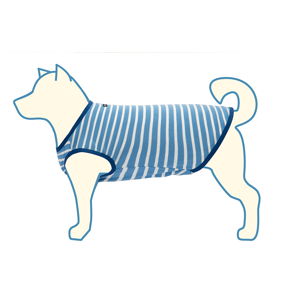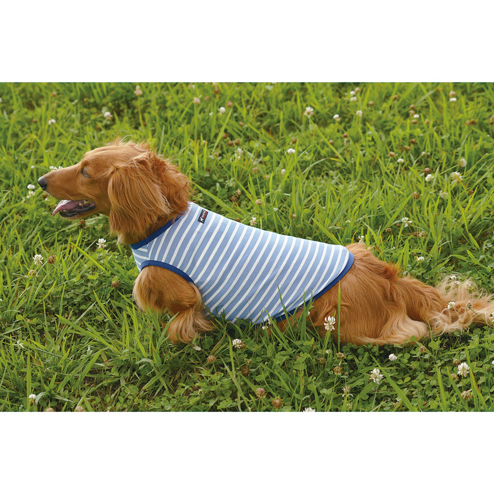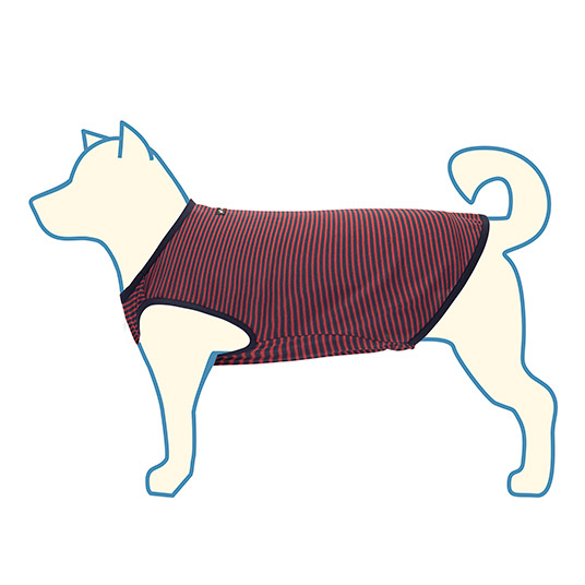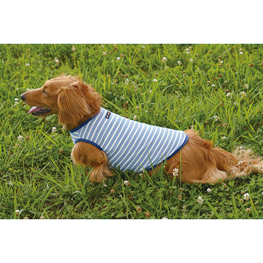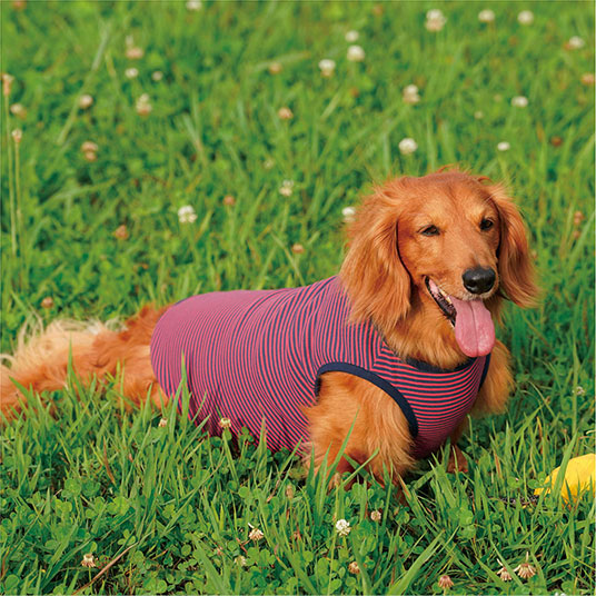 人用Tシャツでも使用されている、速乾性と通気性に優れる快適素材ウイックロン®を使用した犬用Tシャツです。リブ編みにすることで、よく伸びて着せやすく、汚れ防止や抜け毛の抑制にもなります。